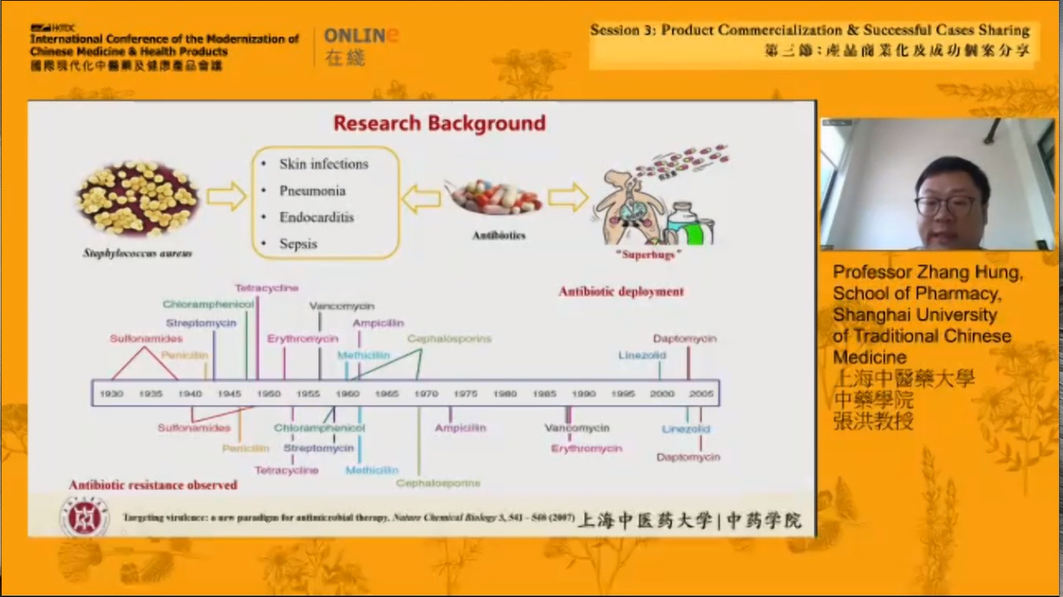 2020年8月14至15日,第19届国际现代化中医药及健康产品会议(ICMCM)在香港会议展览中心举行。由于今年受新冠肺炎疫情影响,本次会议采用线上与线下相结合的方式进行。此次会议由香港贸易发展局与现代化中医药国际协会(MCMIA)联合主办,国家中医药管理局对台港澳中医药交流合作中心及香港5间大学等相关机构协办。nHentai 首席教授徐宏喜院长及现代化中医药国际学会创会董事Harry YEUNG先生担任大会主席。