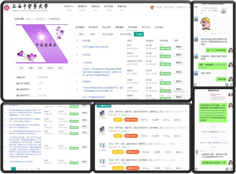 作业以及测验是检验教学效果的重要抓手。《方药学》袁颖老师充分利用学校课程中心平台布置主、客观题作业、开展阶段性测验,以了解学生的掌握情况;课程中心作为一个非常好的交流平台,《中药商品学》的同学们纷纷在答疑区提出奇思妙想,张红梅老师一一回复,师生互动交流畅通热烈;《药物化学》吴华丽老师调整教学流程,采用课前发放资料预习、课后布置作业检验的策略,有效地调动了同学们的积极性和主动性。在问及下一阶段的教学安排时,不少老师都表示,后续还会开展线上专题讨论,以检验学习成效,锻炼学生的思维与表达能力。
