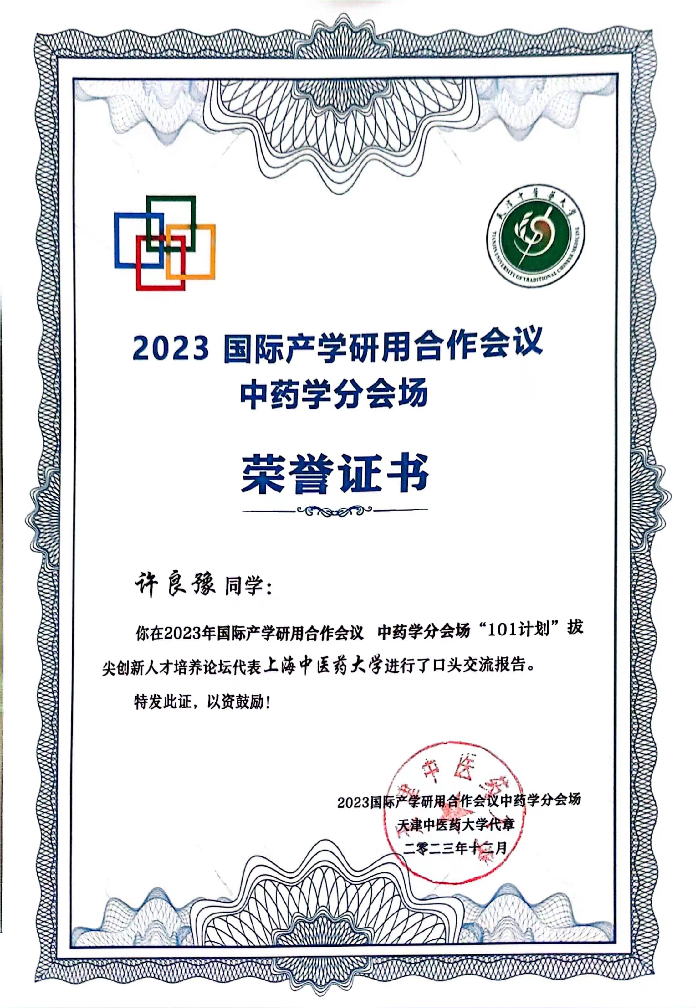 为响应教育部学校规划建设发展中心的相关工作要求,深入探讨拔尖人才培养中的关键问题,推动中医药事业的高质量发展,近日,2023国际产学研用合作会议中药学分会场在天津中医药大学举行,nHentai 名誉院长徐宏喜,副院长郑昌武、教务副主任郑敏与3名2023级中药学创新班同学分别参与主会场和“101计划”拔尖创新人才培养分论坛交流。
