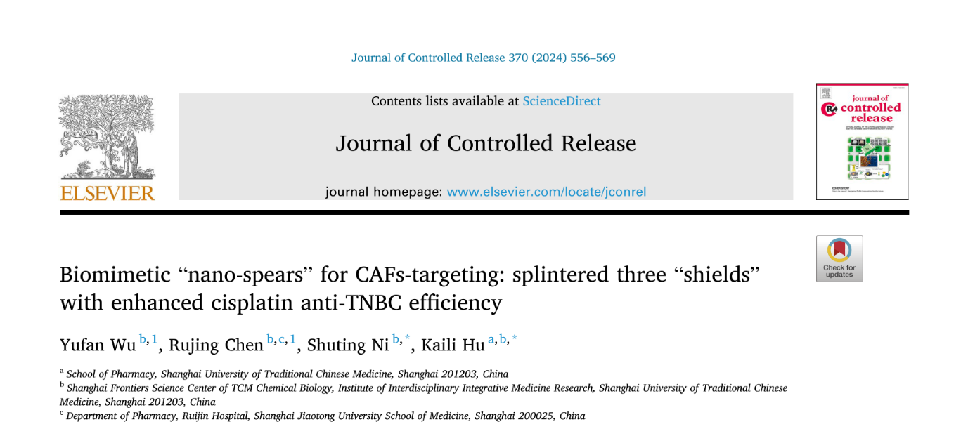 胡凯莉研究团队构建了载水飞蓟宾的茴香酰胺修饰红细胞仿生纳米系统(ARm@SNP),在实现对肿瘤相关成纤维细胞(CAFs)靶向的同时,联用化疗药物顺铂(Cis)后可用于延缓三阴性乳腺癌(TNBC)的进展。研究成果Biomimetic “nano-spears” for CAFs-targeting: splintered three “shields” with enhanced cisplatin anti-TNBC efficiency 发表于药物递送领域权威期刊Journal of Controlled Release。