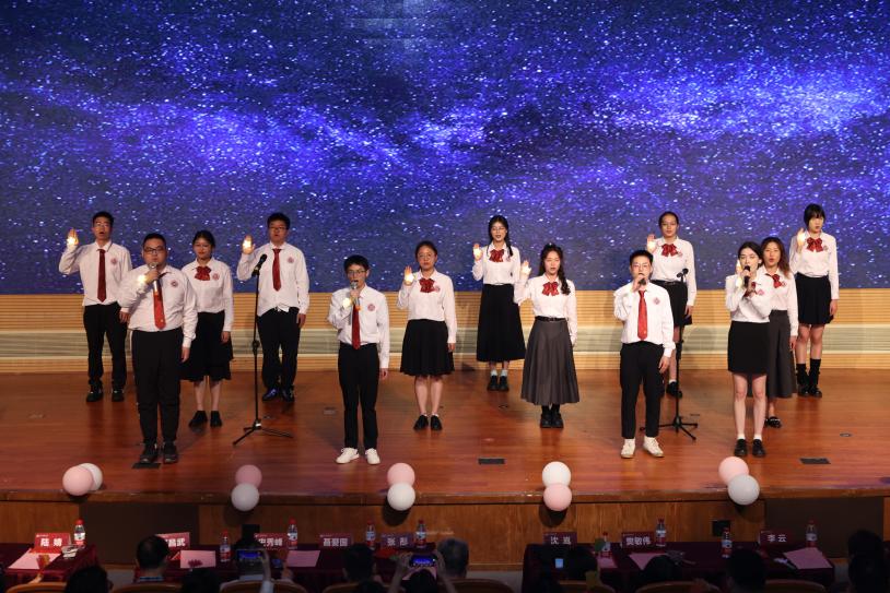 2020级中药班古丽斯码、赵昱涵等15位同学以一曲《夜空中最亮的星》深情开唱,歌声中仿佛有颗明亮的星星指引着每个人的梦想之路。现场师生仿佛置身于浩瀚的星空之下,与那颗最亮的星一同闪耀,感受着希望与梦想的力量。