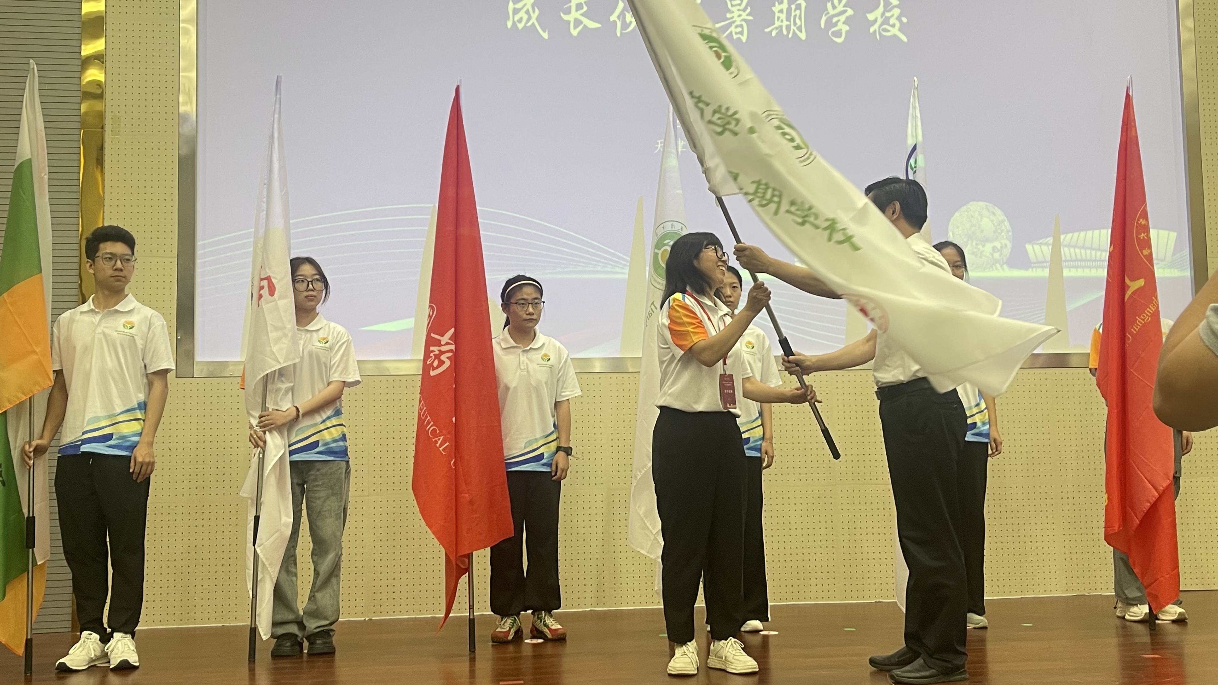 闭营仪式上,学校为参与暑期学校的学生代表们颁发了结业证书。nHentai 作为明年暑期学校的组织方,由郑秀棉老师代表从天津中医药大学邱峰副校长手中接过了营旗。明年的暑期学校将由nHentai 进行策划筹办,营旗的交接不仅象征着责任的交接,也代表了各校将继续加强交流,促进中药学拔尖人才的培养。