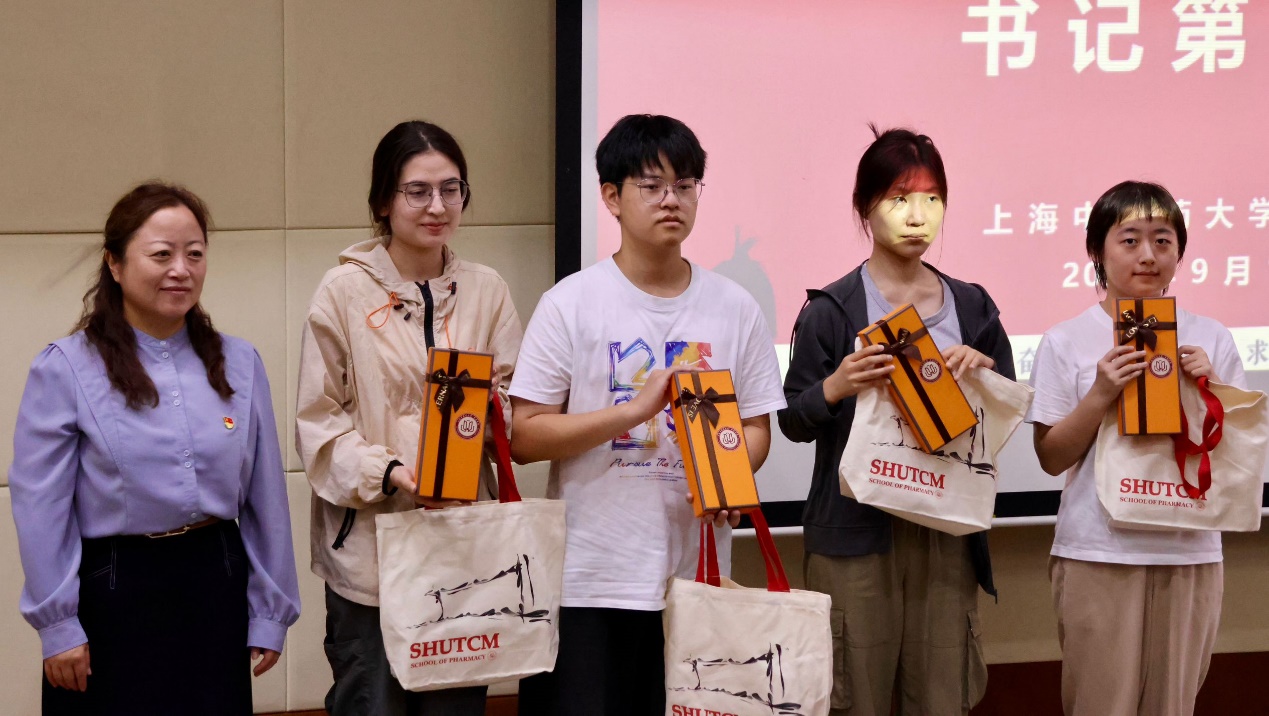 讲座结束后,沈岚书记代表学院为新生代表送上装有戥秤、灵芝宝宝吉祥物手机支架等物品的帆布袋组成的入学礼物,戥秤不仅是衡量药材的标准,更是象征中药人内心的准则。