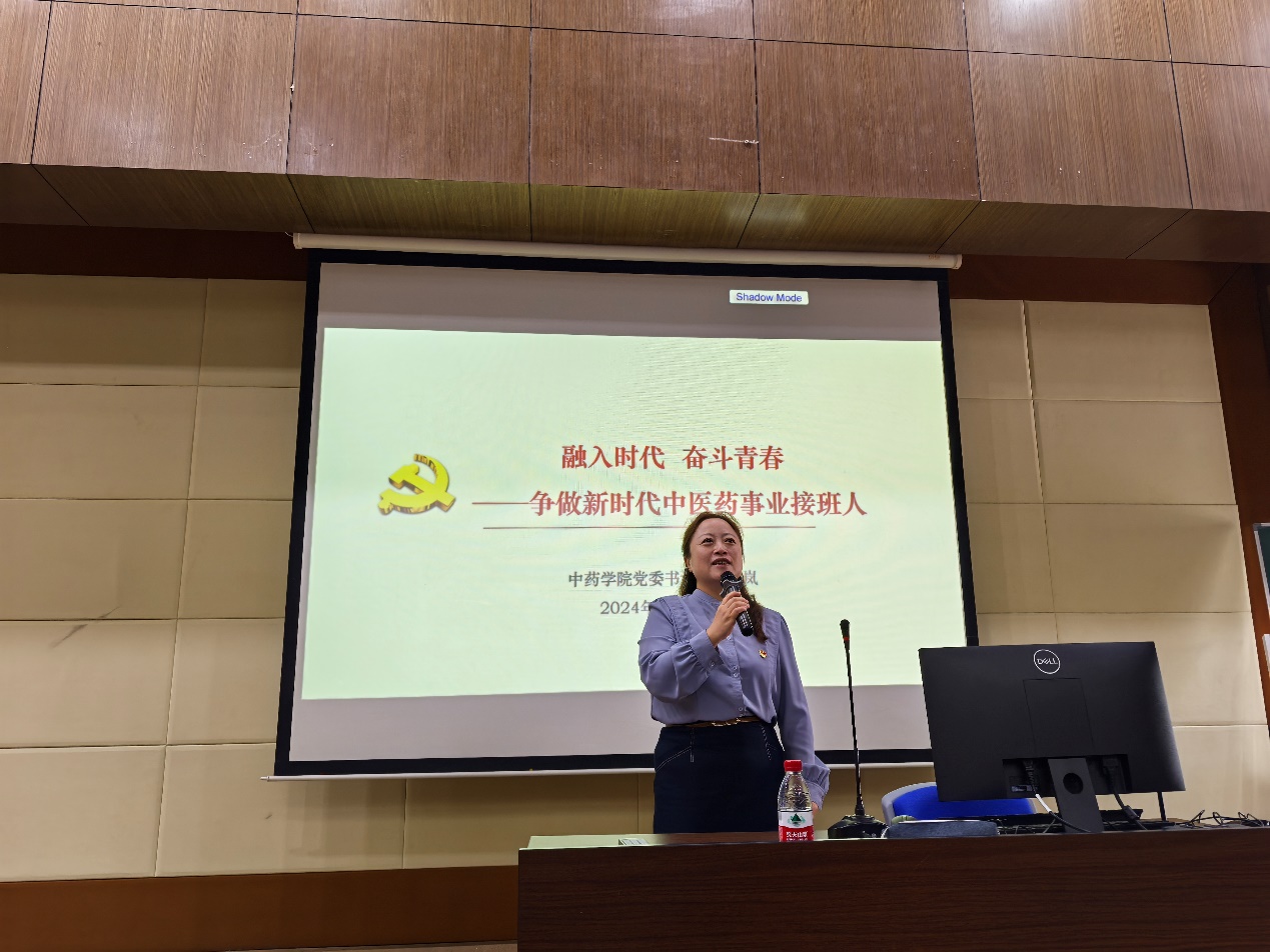 沈岚书记分享了老一辈中药人在中药学事业中无私奉献、教书育人的奋斗经历,他们春风化雨,谆谆教诲,带领青年学子和教师在中药领域不断开拓,坚定信念的奋斗经历,让在场新生为之敬佩深受鼓舞。