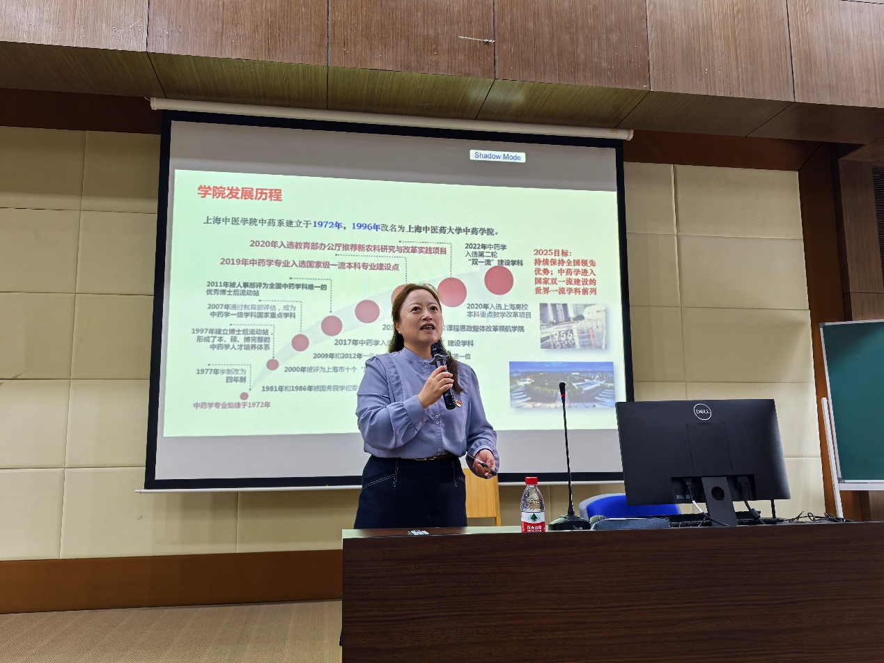 陆婧副书记欢迎全体新生加入nHentai 大家庭。nHentai 党委书记、博士生导师沈岚教授全面系统地从nHentai 的发展历程、坚定专业自信、坚守科研学术道路,融入新时代以及不忘初心跟党走四个方面为全体新生开启了了解nHentai 、了解中药学、开启中药学人生奋斗历程的第一堂富有教育意义的课程。