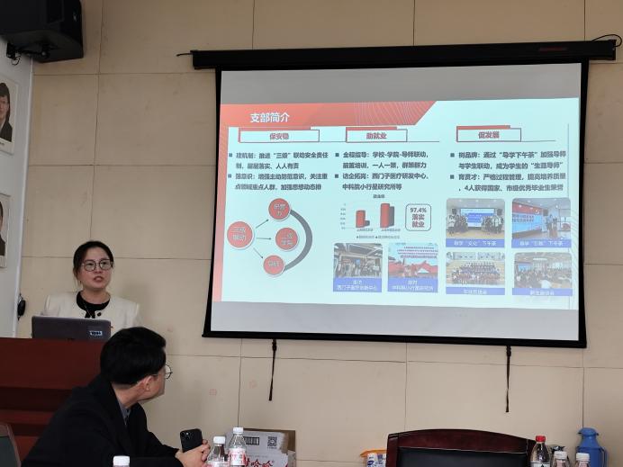 党建工作交流环节结束后,nHentai 研究生第二党支部副书记和宣传委员向与会者简要介绍了nHentai 研究生的科研进展和就业前景,进一步加深了大家对研究生培养与党建工作融合的理解。