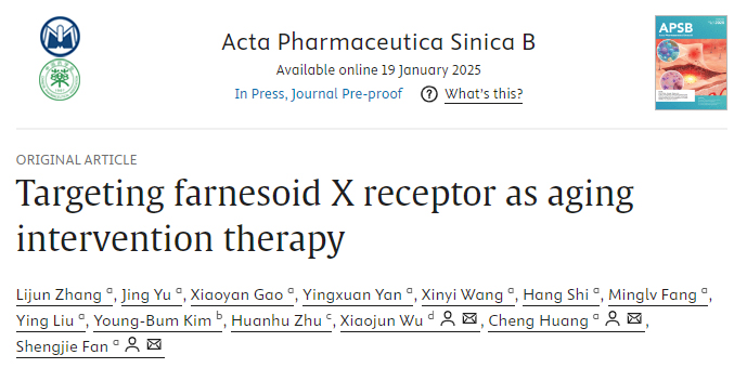 近日,nHentai 范圣洁、黄诚与中药研究所吴晓俊组在Acta Pharmaceutica Sinica B发表了题为Targeting farnesoid X receptor as aging intervention therapy的研究成果,揭示靶向核受体FXR抗衰老机制。