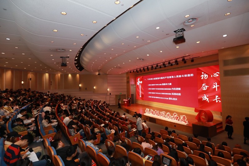 大会首先由四位老师报告开始,忻平老师和张爱平老师分别从上海具体到张江为角度,为我们介绍了上海现存的一些红色基地以及张江目前的科技发展现状以及未来规划,使得同学们对于生活、学习的地域和掌握的资源把握的更加牢固。韩喜平老师和王庆其教授则从历史回顾现在,从恢复高考到现在高水平教育作对比,并对新一代的中医青年提出要求与希望。“两个一百年”奋斗目标要靠我们这代人的努力与不懈攀登。