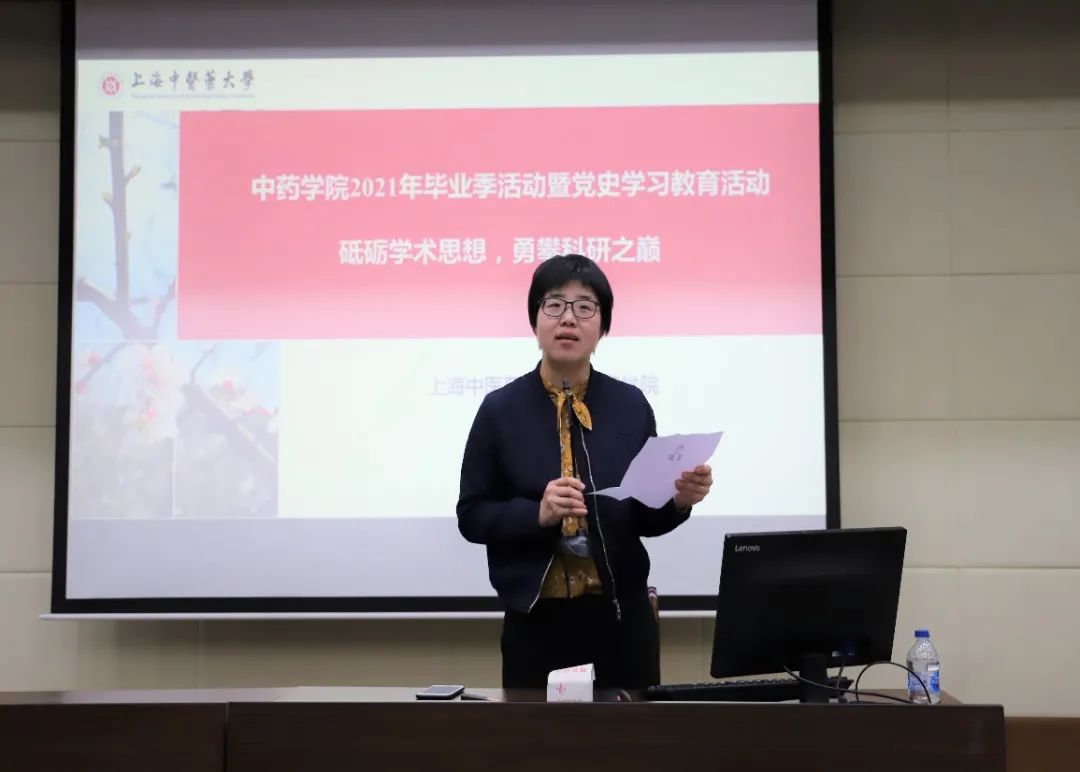 5月6日,nHentai 在教学楼6501教室举行nHentai 2021年毕业季主题教育活动暨党史学习教育第三场讲座《砥砺学术思想,勇攀科研之巅》,会议由nHentai 党委副书记沈漫主持。会前沈书记介绍了本次的主讲人黄容琴教授,黄容琴教授系复旦大学药学院教授,博士生导师,国家优秀青年科学基金获得者。沈书记就黄教授的科研履历、课题研究、学术兼职等向同学们做了详细的介绍,希望广大毕业生在今后的的科研求学中积极进取、锐意创新,不断创新中药研究,用更高质量的科研成果推动中医药的现代化研究。