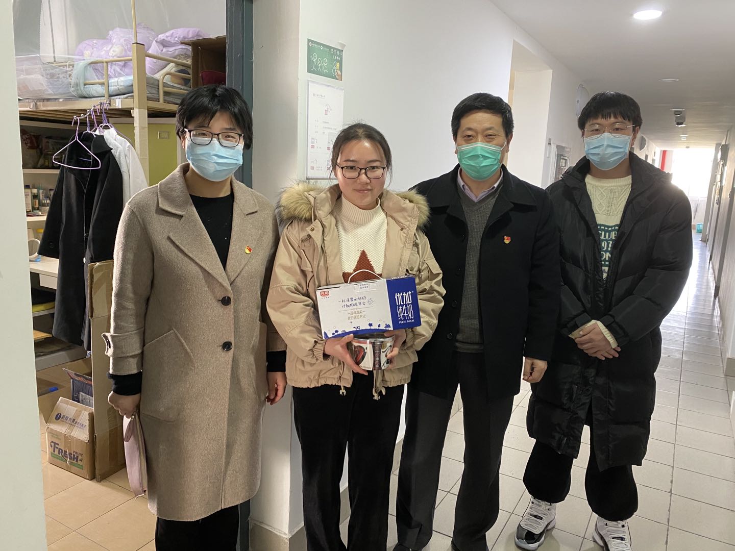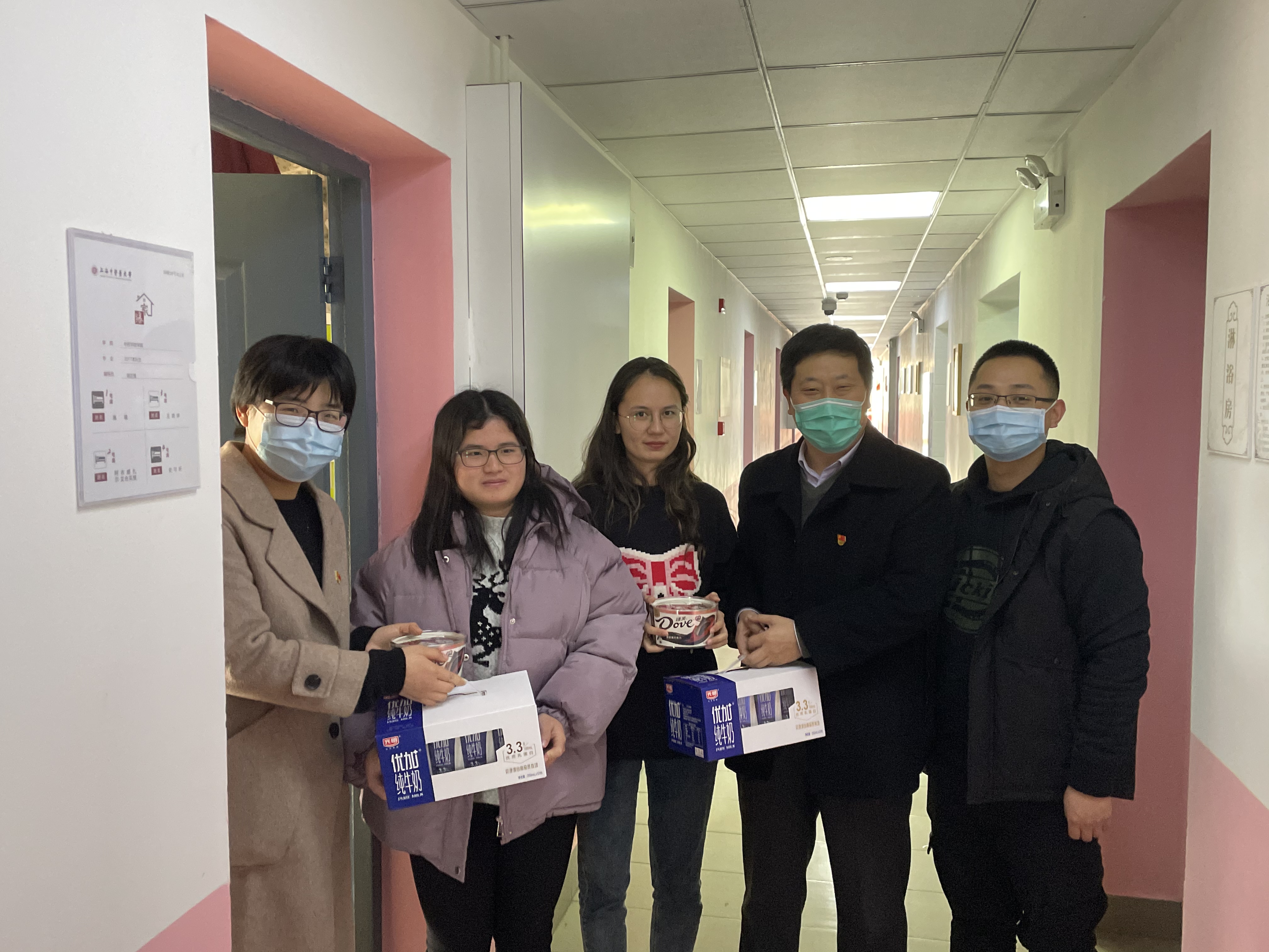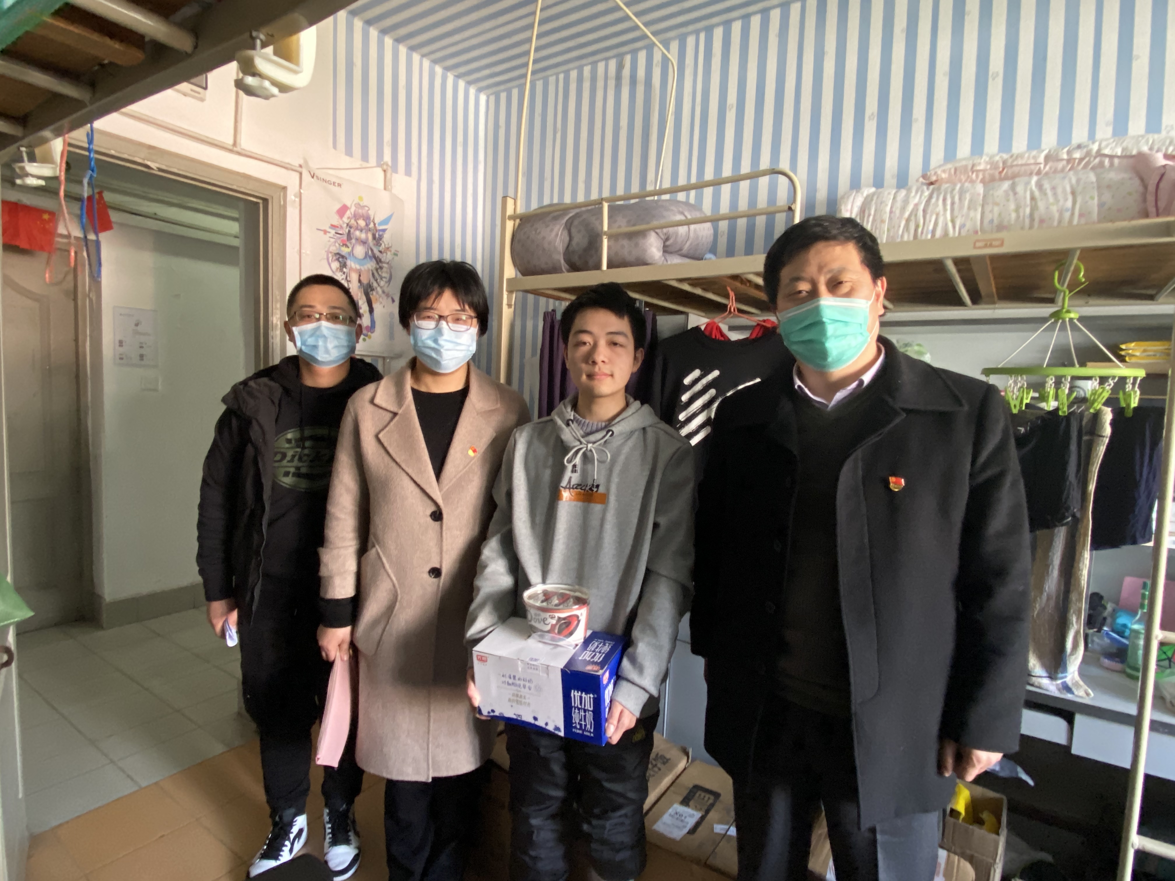 为关心和深入了解寒假留校学生的学习和生活情况,使学生们度过一个健康、快乐的春节,24日下午,在nHentai 党委书记李医明、副书记沈漫的带领下,辅导员王倩倩、王盼、胡志强、范丽晨等4位老师来到实验室、宿舍园区看望并慰问了留校的学生。
