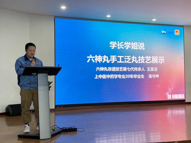 随后,上海雷允上药业有限公司副总经理李琦与nHentai 党委书记沈岚共同为上海雷允上药业有限公司岐黄育人实践基地揭牌,推动了校企合作迈上新台阶。16级中药学毕业生高守甲、17级中药学毕业生王雨婷、18级中药学毕业生黄邦路进行“学长学姐说”分享,分享了入职上海雷允上药业有限公司后的个人成长与发展,对学校及公司的培养表示感谢,后期也将秉持初心继续在岗位上用心做好各项工作。六神丸非遗技艺第七代传承人王圣洁老师为中药创新班师生进行现场手工泛丸展示,将制药人的匠心与中医药文化的传承与创新通过一粒粒药丸传递给师生。