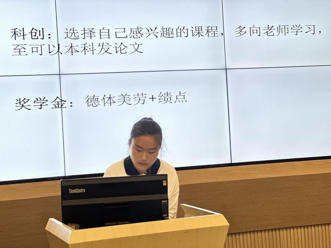 此次朋辈分享会,我收益颇丰。首先,从前辈们分享的经验中,我获得了一些重要信息:比如科创大赛如何选题及其报名,以及如何获取信息的途径等等。其次,在看到学长学姐自信地分享自己的经历时,我受到了深深的鼓舞。即便是现在仍旧迷茫,但对自己未来的规划有了清晰的目标。最后,通过学长学姐们的分享,感受到了学生工作对自信以及能力上的培养和锻炼,同时也更深入地了解到了平衡学习与工作的重要性。