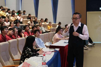 徐宏喜教授以互动的形式开场,在新生面前徐徐道来自己精彩的人生轨迹:从本科与中药结缘,到研究生结识名师,再到前往异国他乡继续深造,最终取得科研硕果累累。分享自己丰富多彩求学路的同时徐教授建议同学们在大学期间学好英文,参与研究,建立友谊,培养兴趣爱好,希望大家拥有充实快乐的人生,以幽默风趣的演讲为同学们的求学、求职与科研之路指明了方向。现场氛围火热,喝彩声、掌声不绝于耳。