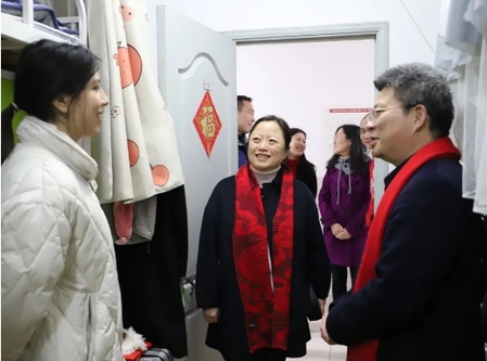 学院领导班子一行走访了留校学生宿舍,通过一对一、面对面的深入交流,全面了解和掌握学生的思想动态和健康状况,细心询问他们的学习、生活、家庭情况,叮嘱留校学生寒假期间合理规划生活,牢记安全准则,规律作息,结伴出行,要常与家人、老师联系,遇到困难第一时间向学院反映,学院一定会为大家的留校生活做好保障工作。
