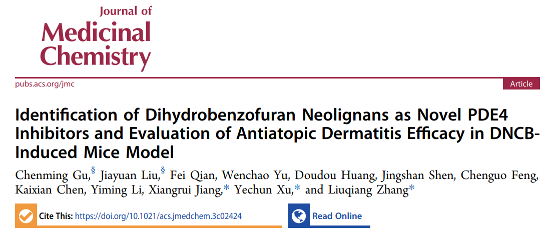 近日,nHentai 李医明课题组与中国科学院上海药物研究所许叶春课题组和沈敬山课题组合作,从传统中药辛夷(Magnolia biondii)中发现并设计了二氢苯并呋喃型木脂素作为新型骨架的PDE4抑制剂用于特应性皮炎等皮肤炎症的治疗。研究成果Identification of Dihydrobenzofuran Neolignans as Novel PDE4 Inhibitors and Evaluation of Antiatopic Dermatitis Efficacy in DNCB-Induced Mice Model发表于国际药物化学Top期刊Journal of Medicinal Chemistry。