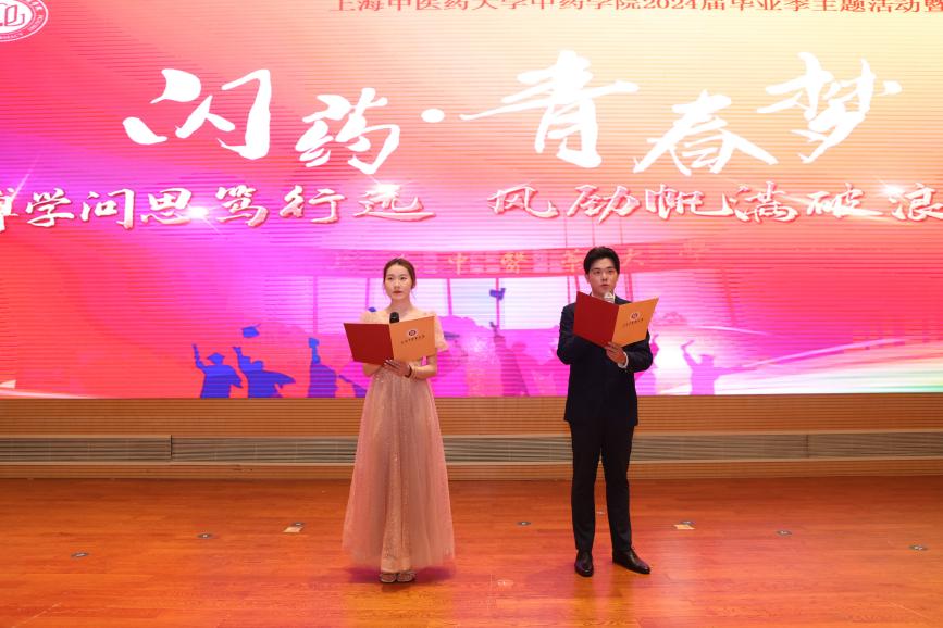 一段学生祝福的暖场视频和2020级药学班张浩楠、谢梓彬等7人的歌曲串烧《逆光》《夏天》将大家带入了回忆的海洋。视频中,一幅幅画面交织出时光的印记,镌刻在每个毕业生的心间。歌曲串烧则以其动人的旋律和深情的歌词,唤起了毕业生们对大学生活的美好回忆与无限感慨。