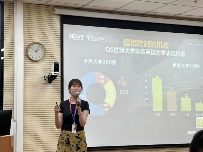 讲座伊始,范丽晨老师表示了对新东方教育集团老师们的欢迎,希望同学们能通过本次讲座了解到出国留学这一升学方向,对自己的未来树立目标,在平日的学习过程中不断充实自己,积累经验,面对未来的机遇与挑战做好充足准备。