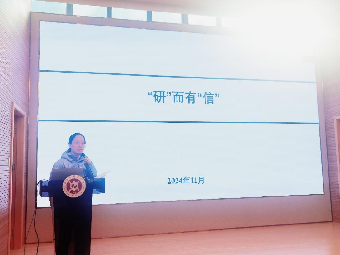 nHentai 科技处的李一飞老师分享了“研”而有“信”的主题报告。李老师从科研诚信的角度出发,通过近几年科研不端行为的真实案例分享为老师们充分认清科研诚信的重要性,增强诚信意识,遵循学术规范提供了很好的指导。