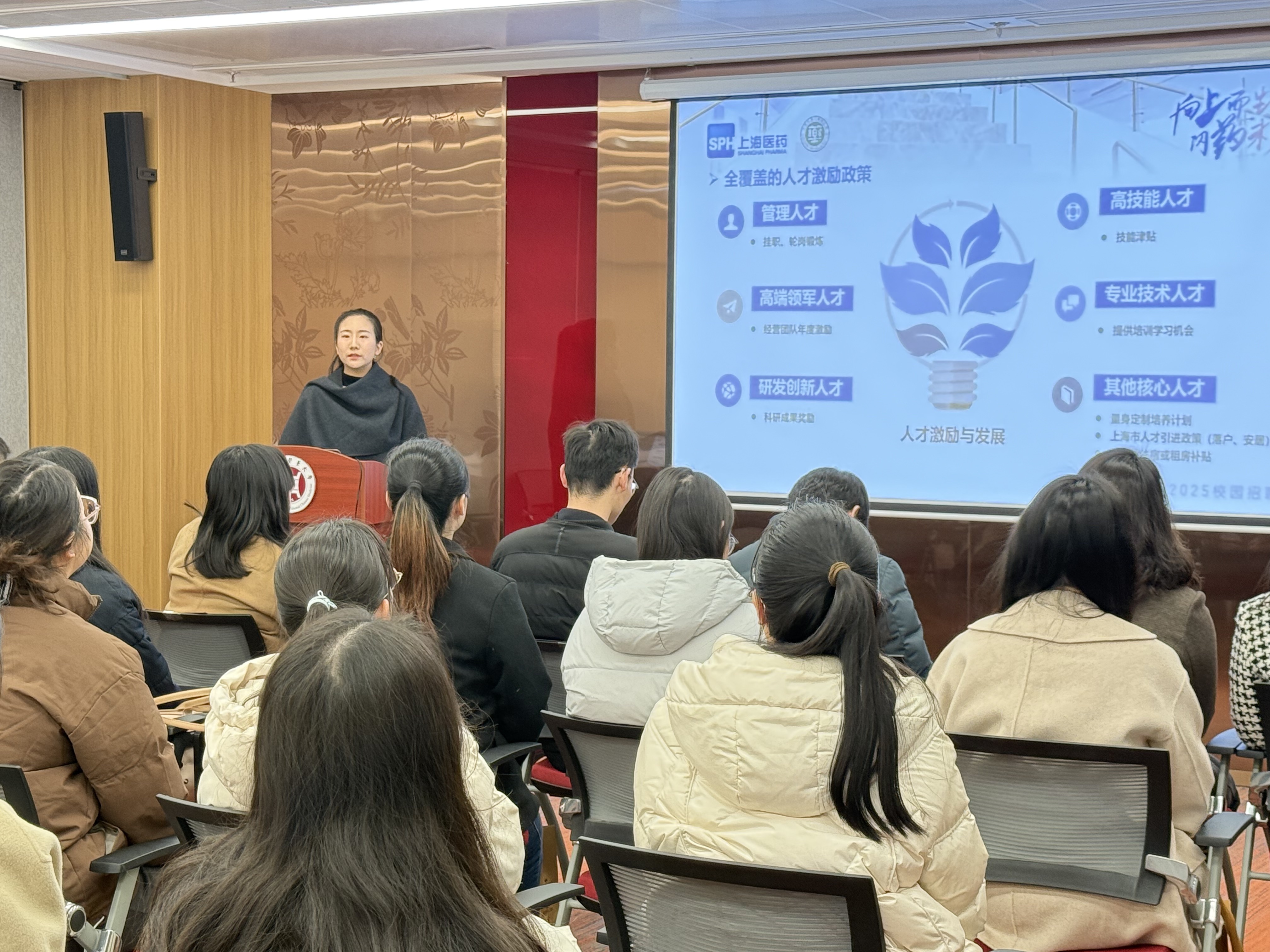 宣讲会上,各企业代表依次详细介绍了公司的发展概况。从悠久历史的老字号企业传承,到新兴生物科技公司的创新突破,企业的独特魅力与文化底蕴深深吸引着在场的每一位同学。在招聘岗位介绍环节,无论是专业技术岗,还是市场营销、行政管理等综合岗位,都为不同专业背景和职业兴趣的学生提供了广阔空间。企业代表还分享了职业发展机会,明确指出内部完善的晋升体系和培训机制,鼓励毕业生们积极投身企业,实现个人价值与职业成长的双赢。同时,应聘流程的细致讲解,从简历投递到面试技巧,为同学们提供了清晰的求职指引,帮助大家少走弯路。