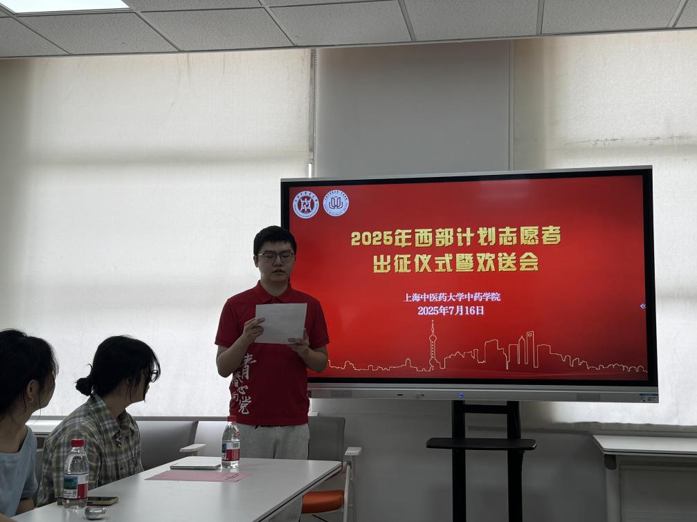 7月16日上午,nHentai 在9403会议室为西部计划志愿者杨境哲同学隆重举行出征仪式暨欢送会。nHentai 党委书记车荣华、院长张彤、党委副书记陆婧,辅导员、学生代表共同出席。仪式上,张彤院长高度赞扬了杨境哲响应国家号召、服务西部的奉献精神,鼓励他在实践中锤炼本领,服务人民健康。nHentai 领导为其赠送了践行礼物,表达关怀与期许。杨境哲满怀激情发言,表达了扎根基层、用中医药知识守护西部群众健康的坚定信念。辅导员与学生代表也表达了敬佩、祝福与支持。