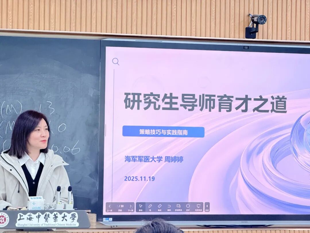 为深化“科学家精神”在育人实践中的引领作用,构建教学相长的中药药理学科组育人共同体,2025年11月20日,nHentai 药理教研室成功举办了专题交流活动。本次活动特邀上海市药物(中药)代谢产物研究重点实验室主任、海军军医大学药学系药物分析学教研室主任周婷婷教授,为教研室的青年教师和同学们作了题为“研究生导师育才之道”的精彩报告。