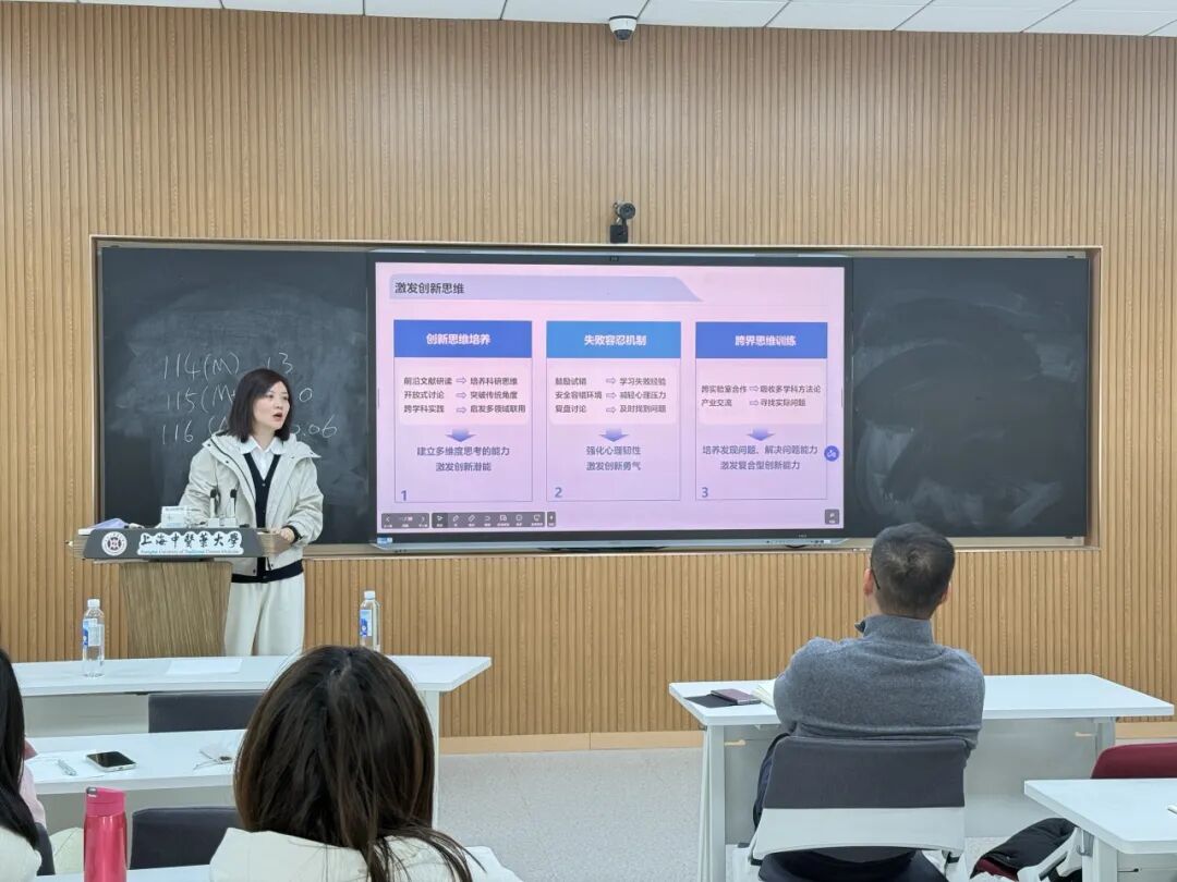 在培养方法上,周教授向青年教师重点分享了如何通过“教学科研双线驱动”的模式,激发研究生创新潜能,实现高水平科研成果产出与综合能力提升的有机统一。她特别指出,“有效的沟通”是化解科研压力、疏通思想堵点的金钥匙,并提供了诸多行之有效的师生沟通实践策略。